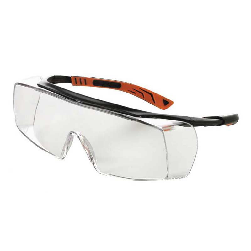 - Ο φακός από τα γυαλιά είναι διάφανος και ο σκελετός είναι μαύρο με πορτοκαλί χρώμα.