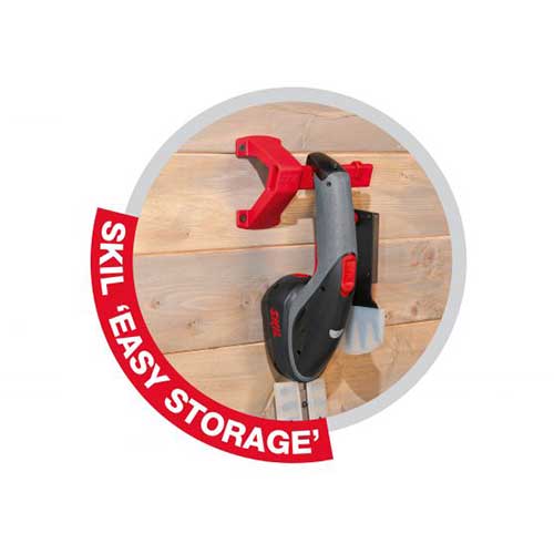 - Μοναδικός σχεδιασμός χειρολαβής Skil «ΕΥΚΟΛΗΣ ΑΠΟΘΗΚΕΥΣΗΣ» για εύκολη ανάρτηση του εργαλείου στο συμπαραδιδόμενο εξάρτημα αποθήκευσης Skil